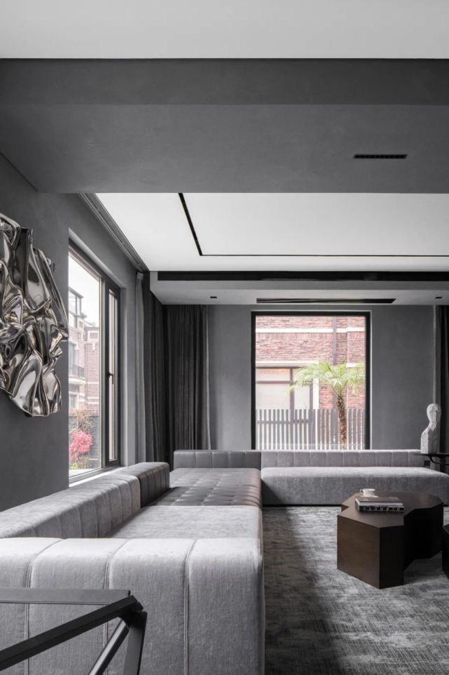起居室簡潔明快,一組沙發(fā)+茶幾搭配,簡單實(shí)用,空間更加寬松。微水泥空白設(shè)計(jì)與灰白搭配,使空間更加可能。